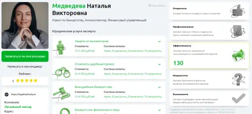 Официальный профиль юриста Легального Метода есть на нашем портале. Вы можете уже сейчас изучить его контакты, адрес, цены на услуги и почитать отзывы.